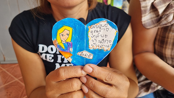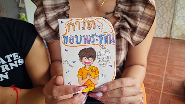 และวันต่อมาตนก็ไปกับหลานสาว ซื้อของไปให้ด้วย ทั้งยายและเหลนดีใจมาก น้องทั้งสองคนยังได้เขียนการ์ดอวยพรให้กับตน 2 คน รู้สึกประทับใจมาก ตนก็ช่วยได้ตามกำลัง แต่ก็อยากฝากให้ผู้ใจบุญช่วยเหลือยายกับเหลนด้วย ทั้งเรื่องที่อยู่อาศัยและอาหารการกิน ทั้งห่วงเรื่องความปลอดภัยเพราะอยู่ในป่ามีแต่ผู้หญิง