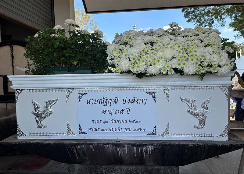 วันที่ 6 ธ.ค. 2568 เวลา 12.40 น. มีพิธีเคลื่อนร่าง ‘นัทปง ณัฐวุฒิ ปงลังกา’ ออกจากวัดริมกก โดยใช้รถกระบะลากปราสาทจำลองที่บรรจุโลงศพ มีครอบครัว เพื่อนสนิท และเพื่อนร่วมงาน ช่วยกันจูงเชือกขนาดใหญ่เพื่อเคลื่อนขบวน มุ่งหน้าไปยังป่าช้าฌาปนสถาน ระยะทางประมาณ 900 เมตร