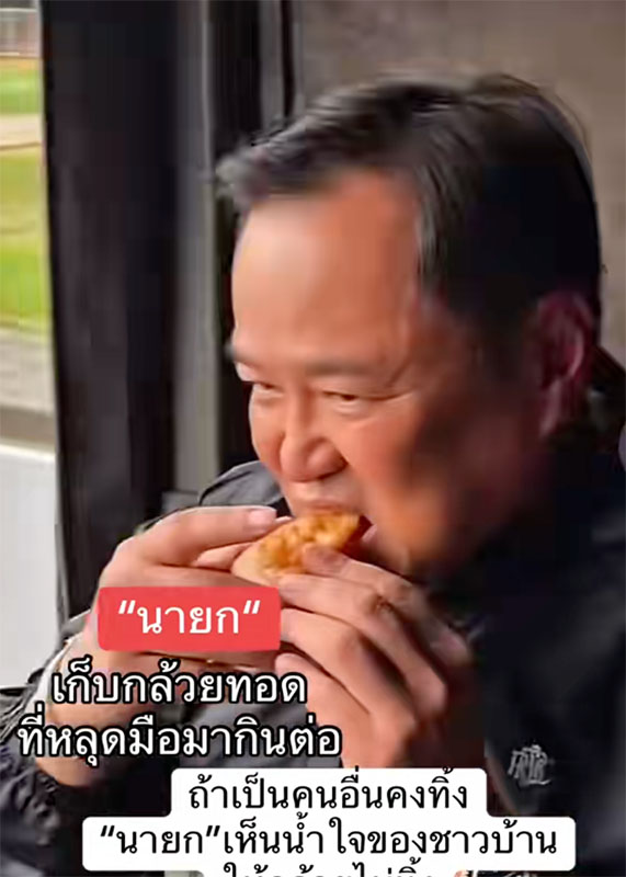 ระหว่างที่นายกฯ กำลังหยิบกล้วย มีประชาชนหลายคนในพื้นที่ทักทาย นายกฯ ได้หันไปทักตอบ จึงทำให้กล้วยหลุดมือ แต่นายกฯ ก็หยิบมากินต่อ ทำให้หลายคนที่ได้ชมคลิปชื่นชมว่านายกฯ เป็นคนง่าย ๆ ติดดิน และเห็นในน้ำใจของชาวบ้าน แม้กล้วยหล่นก็ไม่ทิ้ง