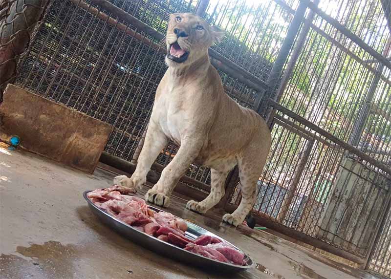 5. เวลา 12.00 น. คณะเจ้าหน้าที่ทำการให้อาหารลูกสิงโต จากการตรวจสอบพบว่า ลูกสิงโตสามารถกินอาหาร แต่ยังกินอาหารไม่หมด อาหารที่ให้ประกอบไปด้วย เนื้อวัว 1 กก., โครงไก่ 2.5 กก., อกไก่ 1 กก และเนื้อหมู 1 กก.