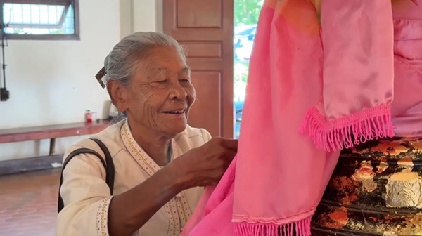 ด้าน คุณยาย ดอตินทวย เปิดเผยว่า เมื่อสมัยก่อนตอนที่ยังมีคุณตาคุณยาย บรรพบุรุษก็จะเล่าให้ฟังเรามาจากเชื้อสายอยุธยานะ ประเพณีของเราต้องก่อกองทราย 1 ปี 1 ครั้ง ระหว่างที่มีเทศกาลสงกรานต์ ก่อพระเจดีย์ทราย เพราะที่เมียนมาไม่มี ความรู้สึกที่มาวันนี้ปลื้มใจและดีใจมาก พูดอะไรไม่ออกเลย ตื้นตันมากๆ พร้อมพูดภาษาไทยบางคำที่พูดได้ให้ฟัง เช่น ขนม กล้วย ดี น้ำอ้อย แม้ว่าภาษาจะเพี้ยนไปบ้างแล้ว ยังพูดว่าการมาครั้งนี้คนที่อยู่ตรงนี้เหมือนได้กลับมาเจอญาติๆ ดีใจมาก ท่ามกลางเสียงปรบมือด้วยความปลื้มใจ