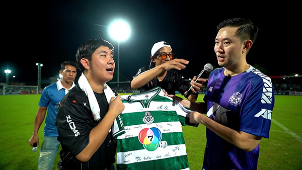 ช่วงพักครึ่งเวลาถือว่าเป็นไฮไลท์ เมื่อเบลล์ ขอบสนาม ลงมาประมูลเสื้อทีมหมอนทองวิทยา ที่มีลายเซ็นนักเตะของทั้ง 2 ทีมครบทุกคน ประมูลเริ่มต้นที่ 50,000 บาท ก่อนจะไปจบที่ 320,000 บาท และผู้ที่ได้ไปคือนายสุทัศน์ บุญรอด อายุ 40 ปี ซึ่งเป็นผู้บริหารบริษัทที่ผลิตชุดแข่งให้ทีมหมอนทองวิทยา โดยนายสุทัศน์ กล่าวสั้นๆ ว่า เสื้อตัวนี้เท่าไหร่ตนเองก็ยอมสู้ ถามว่าตนเองเป็นคนผลิตเสื้อและอยากให้คนอื่นเซ็นเหมือนเสื้อตัวนี้ ก็ทำได้ แต่ที่ต้องการประมูลเพราะต้องการนำเงินให้น้องทีมหมอนทองวิทยา