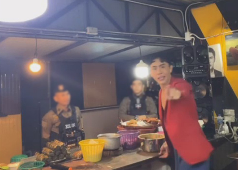 จากนั้นก็เห็นรถตำรวจเปิดไฟวาบ ๆ มา ตนก็รู้แล้วว่าเขาต้องมาที่ร้านตนที่เปิดไฟสว่างไสว แต่ตำรวจก็เอาไฟฉายมาส่องหน้าตน เดินเข้ามาด้วยท่าทางไม่ค่อยเป็นมิตร เข้าใจว่าตำรวจเป็นที่พึ่งของประชาชน ทำเพื่อประชาชน และประชาชนก็ศรัทธา แต่ทำไมถึงมีท่าทางและคำพูดแบบนี้กับประชาชน ซึ่งตนมีปัญหากับตำรวจท่านนี้มาหนัก ๆ แบบนี้ 2 ครั้งแล้ว แต่ครั้งนี้ตนกำลังไลฟ์พอดี จึงมีการเผยแพร่คลิปไปในโลกโซเชียล ตอนนั้นเกือบตี 3 และตนก็ปิดเครื่องเสียงแล้ว เพราะรู้ว่าสมควรแก่เวลา แล้วก็เป็นไปตามคลิป