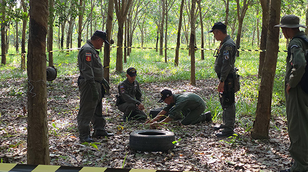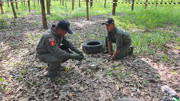 ผู้สื่อข่าวรายงานว่า วานนี้ ( 1 ส.ค.68) เจ้าหน้าที่ลงพื้นที่ทำลายหัวจรวด BM-21 ที่กัมพูชายิงเข้ามาในฝั่งไทยตกในพื้นที่ จ.อุบลราชธานี จุดที่ 4 อยู่บริเวณสวนปาล์มติดกับสวนยางพารา หัวจรวดจากเครื่องยิง BM-21ที่ตกลงมาที่จุดนี้ เจ้าหน้าที่ EOD ให้ข้อมูลว่า จากการสำรวจก่อนหน้านี้พบว่าหัวจรวดมีความสมบูรณ์อย่างมาก ยังไม่ทำงานไม่ระเบิด จรวดยังคงอยู่เต็มบอดี้ขนาดความยาว 2.98 เมตร ตั้งแต่หัวจรวดถึงท้าย โดยจุดนี้เจ้าหน้าที่ต้องใช้ยางรถบรรทุกเก่าวางซ้อนตั้งขึ้นที่ปากหลุมถึง 4 เส้น ก่อนจะโยงสายชนวนและนำระเบิด C-4 ขนาด 3 ปอนด์นำไปวางลงในหลุมที่มีหัวจรวดอยู่