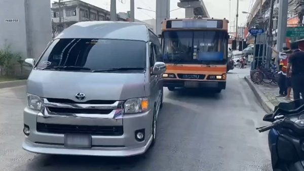 ขณะที่ คนขี่วิน จยย.ปากซอยทรายทอง เล่าว่า ตนเห็นคนขับรถเมล์ให้ของลับคนขับรถตู้จริงๆ ตนไม่รู้จักทั้งสองคน ระหว่างเกิดเหตุเห็นเขาชูนิ้วกลางให้ของลับและพูดจาท้าทายคนขับรถตู้ให้ขึ้นมาบนรถ ซึ่งตอนนั้นตนและเพื่อนๆ ก็ตะโกนห้ามปรามเขาแล้วบอกว่าให้ลงมาข้างล่างพูดคุยเจรจาปรับความเข้าใจกับคนขับรถตู้จะดีกว่าไหม แต่เขาก็ไม่ยอมลงมา จนผู้โดยสารเริ่มเอือมระอาเพราะเสียเวลามากแล้ว คนขับรถเมล์รายนี้จึงรีบออกรถไปทางหัวถนนปากเกร็ด