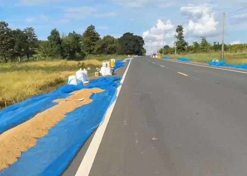 การนำข้าวมาตากบริเวณถนนหลวงในทุกพื้นที่ มีความผิดตาม พ.ร.บ. ทางหลวง พ.ศ. 2535 ห้ามมิให้ผู้ใดติดตั้ง วาง แขวน หรือกองสิ่งใดในเขตทางหลวง ในลักษณะเป็นการกีดขวาง หรืออาจเป็นอันตรายต่อยานพาหนะ ซึ่งมีควมผิด มาตรา 72 จำคุกไม่เกิน 3 ปี ปรับไม่เกิน 60,000 บาท หรือทั้งจำทั้งปรับ