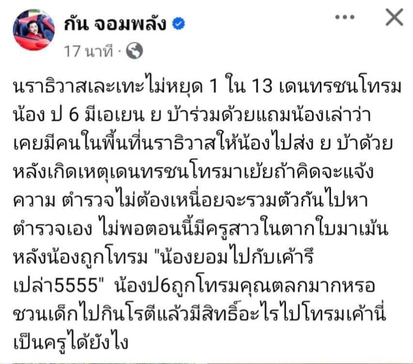 จากเหตุการณ์ที่คุณครูโรงเรียนแห่งหนึ่งในสังกัดสำนักงานเขตพื้นที่การศึกษาประถมศึกษานราธิวาส เขต 2 ได้ไปแสดงความคิดเห็นเกี่ยวกับเหตุการณ์ที่ ด.ญ. วัย 12 ปี ถูกกลุ่มทรชนสิบกว่าคนล่วงละเมิดว่า “น้องยอมไปกับเขาหรือเปล่า 5555” ตามที่ปรากฏเป็นข่าวนั้น