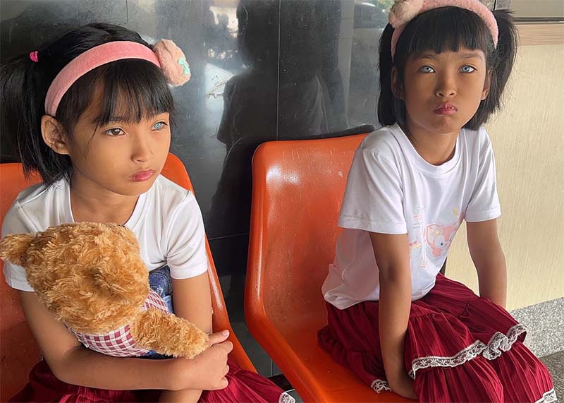 ความคืบหน้ากรณีเด็กหญิงฝาแฝด อายุ 9 ขวบ มีดวงตาสีฟ้า พิการทางหูและพูดไม่ได้ ล่าสุดวันนี้ เจ้าหน้าที่ที่เกี่ยวข้อง รวมถึงเจ้าหน้าที่จากเทศบาลตำบลฝั่งแดง อ.ธาตุพนม จ.นครพนม ได้จัดรถพยาบาลมารับทั้งคู่ไปรับการตรวจรักษา พบแพทย์แผนกหู ตา คอ จมูก รพ.นครพนม