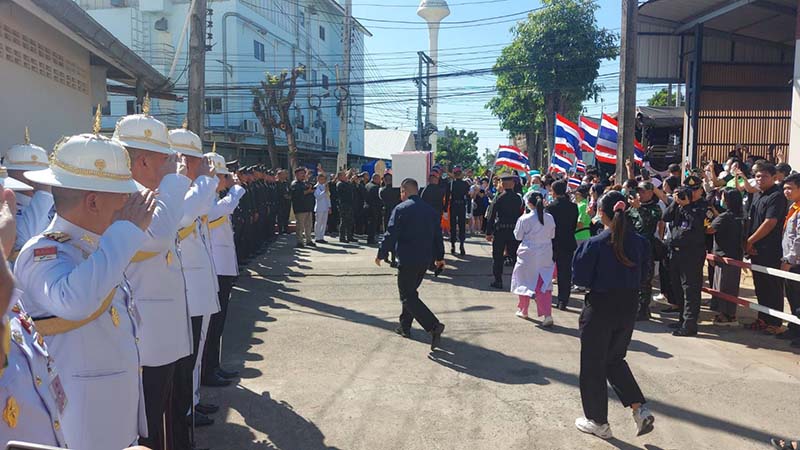 วันที่ 18 ธ.ค. 2568 เวลา 13.30 น. ณ โรงพยาบาลเจ้าพระยาอภัยภูเบศร จ. ปราจีนบุรี บริเวณหน้าห้องนิติเวช ‘พันเอกณัฐพล จวนเจริญ’ เสนาธิการกองพลทหารราบที่ 2 รักษาพระองค์ เป็นประธานทอดผ้าบังสุกุลหน้าหีบศพทหารกล้า ‘จ.ส.อ. พรศักดิ์ เอี่ยมสะอาด’ กำลังพลในสังกัดกองพันทหารราบที่ 1 กรมทหารราบที่ 2 รักษาพระองค์ (ร.2 พัน.1 รอ.) โดยมีผู้เป็นแม่และญาติของทหารกล้า เดินทางมารับร่างไปบำเพ็ญกุศลทางศาสนาที่บ้านเกิด จ. นครนายก