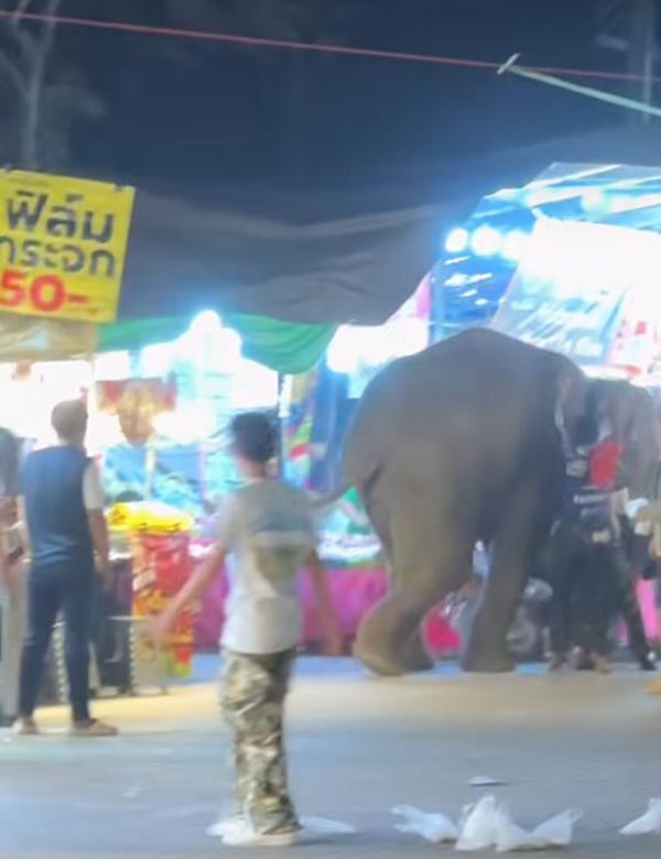 โดยแม่ค้าคนหนึ่งเล่าว่าขณะเกิดเหตุ เห็นช้างอีกเชือกหนึ่งซึ่งเป็นตัวที่ใหญ่กว่า ไม่มีอาการตื่นเสียงพลุแต่อย่างใด แต่ช้างตัวที่ก่อเหตุวิ่งชนคนนั้น คาดว่าจะตกใจเสียงพลุเนื่องจากเป็นช้างตัวเล็กกว่า คาดว่าจะไม่ชินกับเสียงดัง จึงก่อเหตุขึ้น