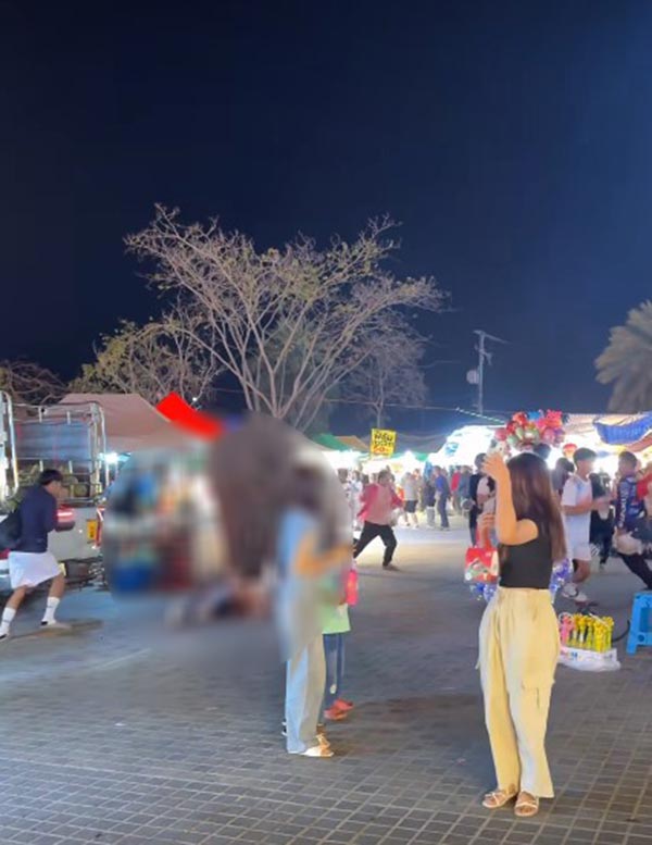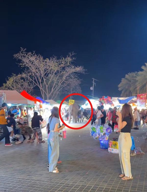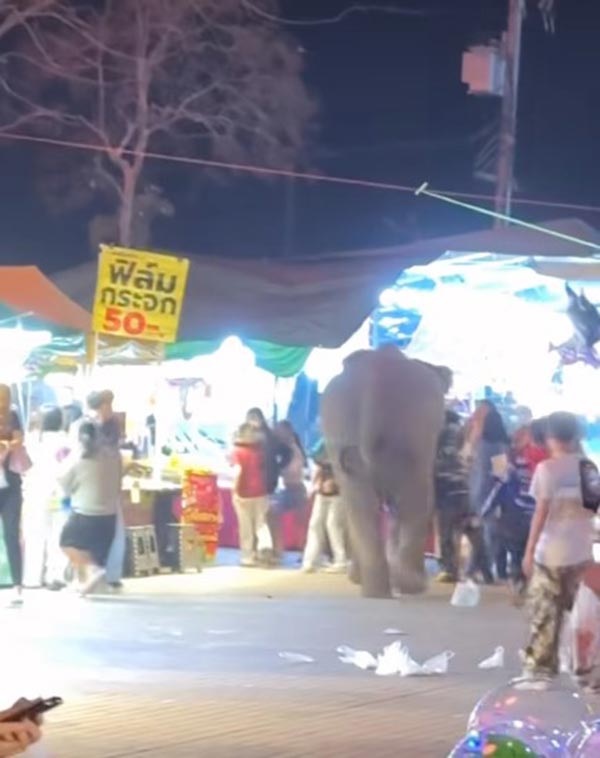 ขณะที่แม่ค้าหลายคนซึ่งอยู่ในที่เกิดเหตุการณ์เล่าว่าขณะเกิดเหตุ กำลังขายของอยู่ ได้ยินเสียงพลุดังขึ้นหลายนัด จู่ ๆ ก็มีช้างเชือก 1 วิ่งพรวดพราดมาชนคนกระเด็นไป เท่าที่ดูด้วยสายตาได้รับบาดเจ็บ 3-4 คนแต่ไม่มีเลือดตกยางออก คาดว่าคงไม่เจ็บมากนัก