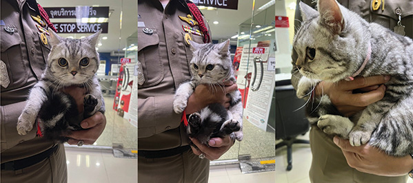 นอกจากนี้ยังโพสต์ภาพน้องแมวนั่งอยู่ในรถและเขียนข้อความว่า “จนท.ออกเวรก็ต้องเอากลับมาก่อน สน.ไม่มีคนดู ผู้ใดเป็นเจ้าของแจ้ง JS100 โทร *1808 , 1137”